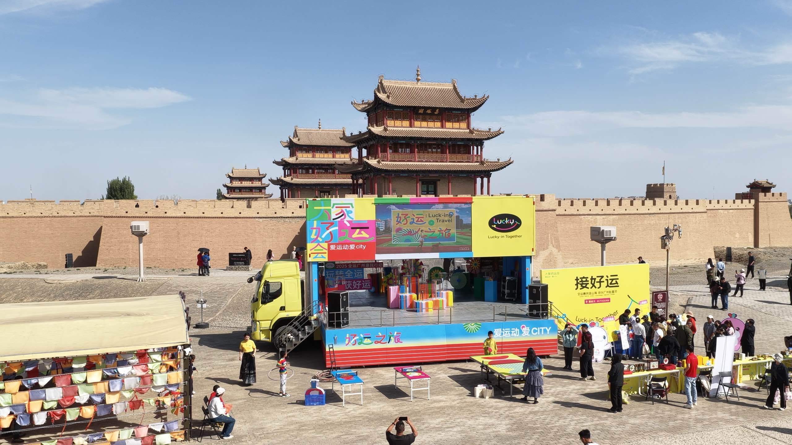 9月27日,满载广州祝福与全运精神的“好运大篷车”抵达甘肃嘉峪关关城脚下。作为由十五运会和残特奥会广州赛区执委会、广州市慈善会联合主办的“大家好运会”全运广州惠民行动第六站,此次活动将全民健身的欢乐场景带到“天下第一雄关”,更通过广府非遗技艺现场展示深圳股票配资论坛,续写了穗甘两地源远流长的丝路情缘。